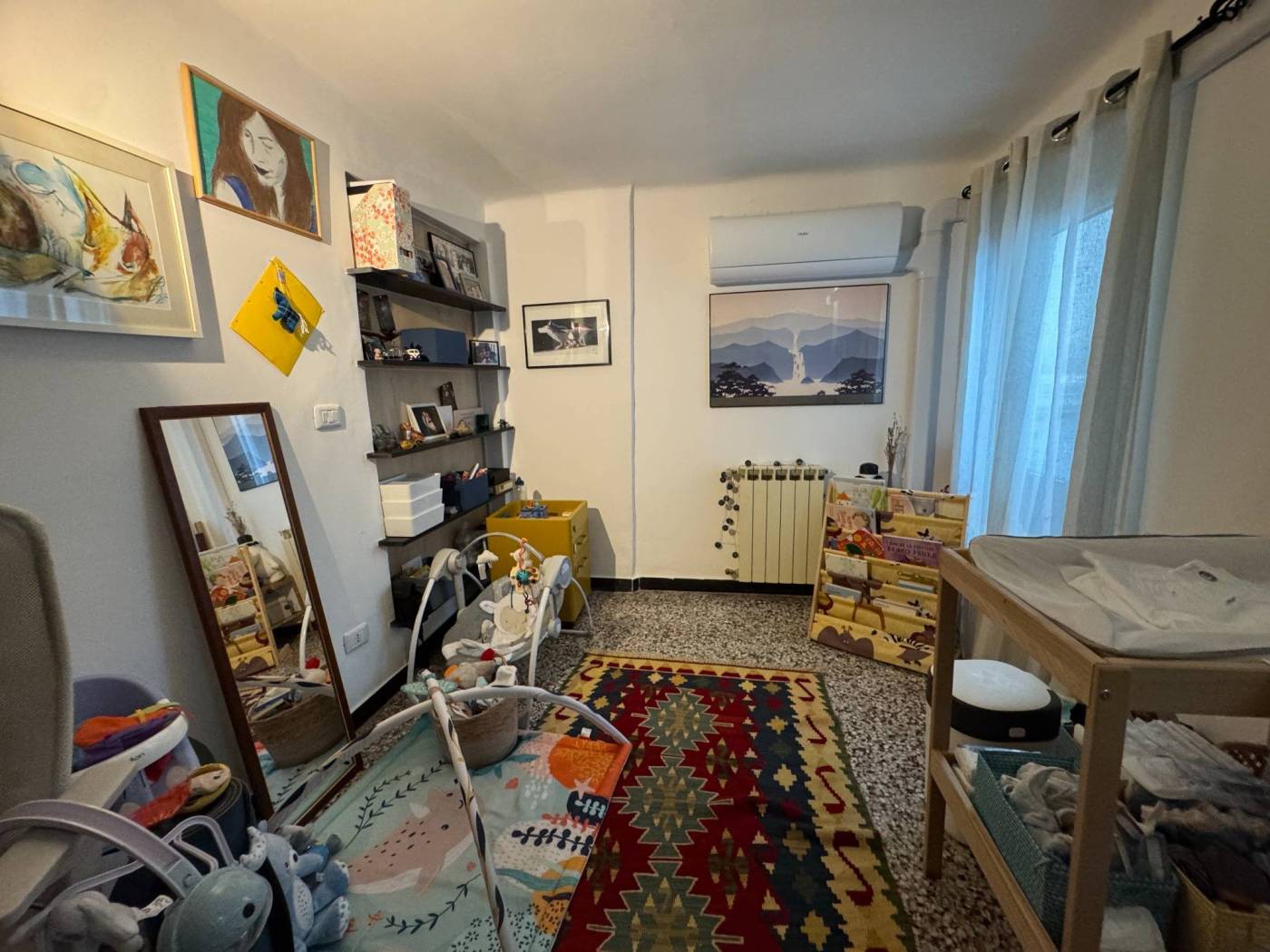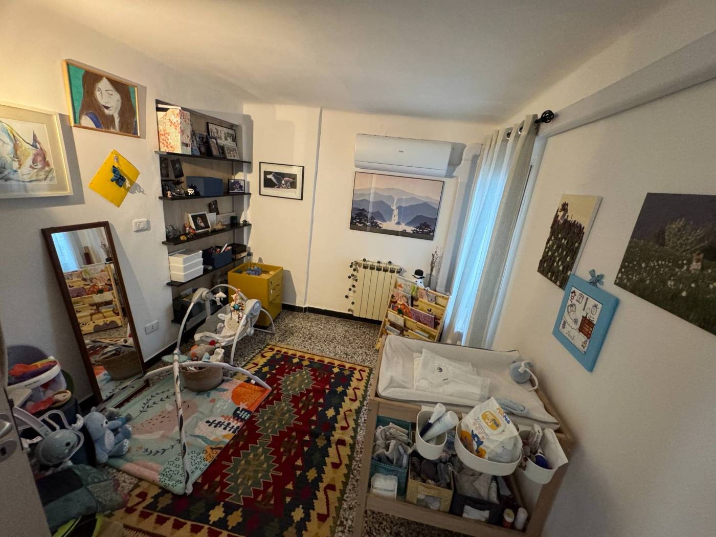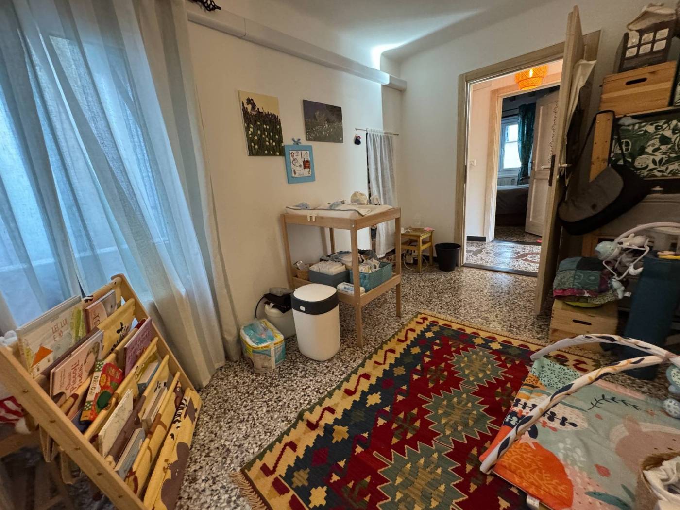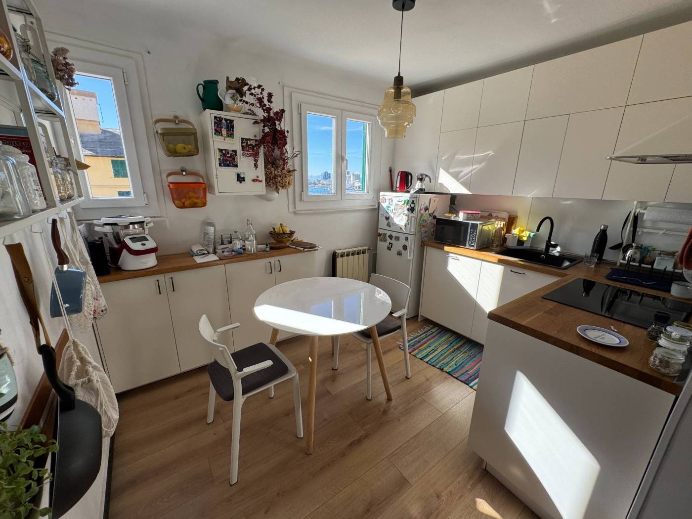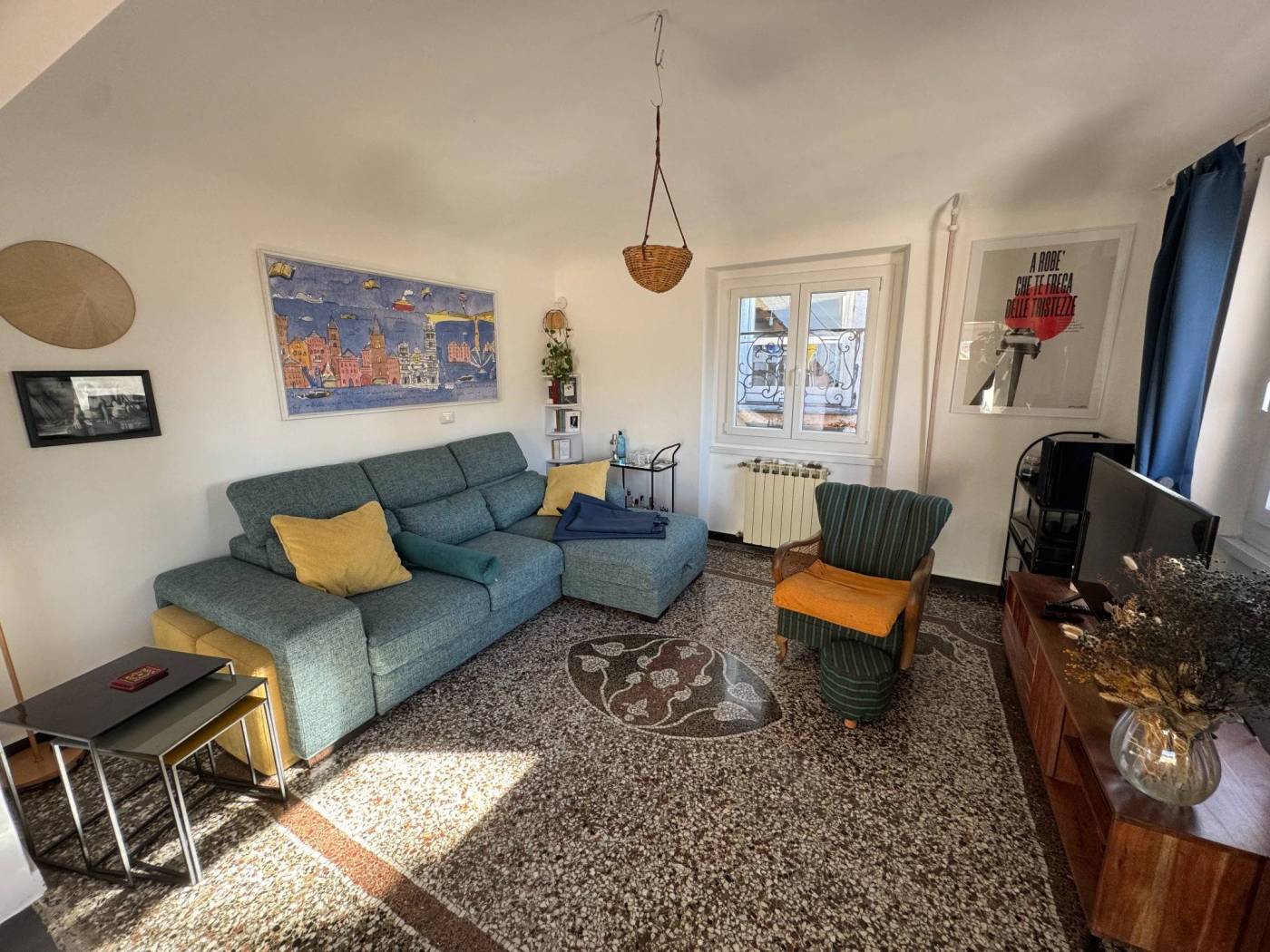 The absence of an elevator, typical of historic residences in the area, is more than compensated by the exceptional natural light, the southern exposure, and the authentic character of the property. Fully renovated, the apartment is arranged over multiple levels: from the entrance, a few steps lead to two bedrooms and a spacious double living room, originally used as a third bedroom. The upper level hosts the kitchen and the bathroom, both completely refurbished. On the top level, the property features a splendid private terrace, the true highlight of the home, open on multiple sides and equipped with a green area, lighting, and an irrigation system, offering open views over the city.