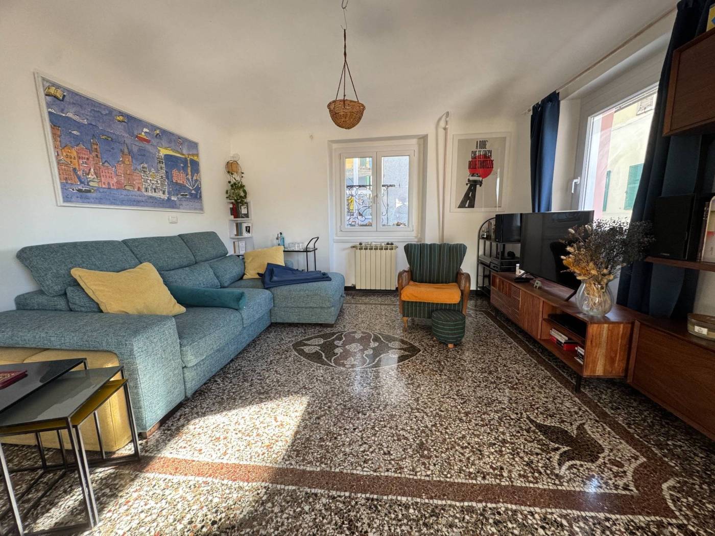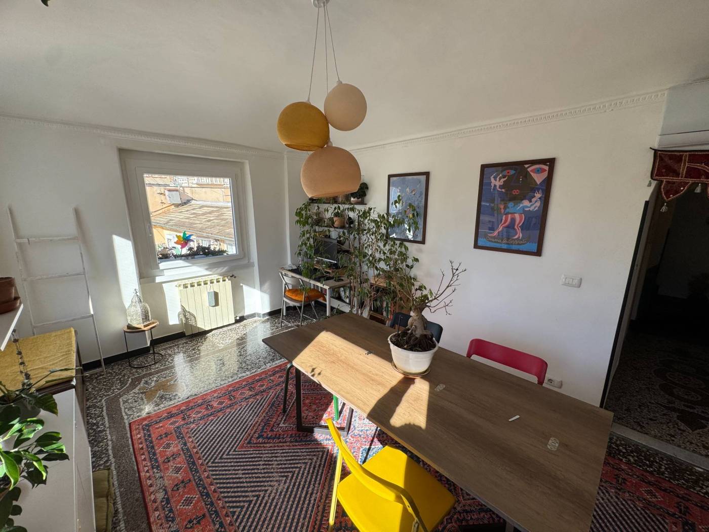 A unique opportunity in the heart of Genoa's Historic Centre, located in one of the city's most authentic and multicultural historic districts. Just a short walk from Via del Campo, this multi-level apartment is for sale, situated between the fifth and sixth floors of a well-maintained building with recently renovated façades.